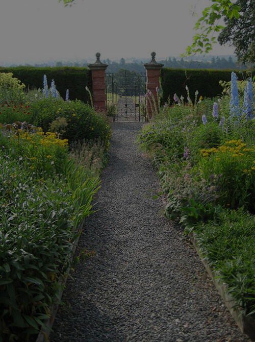The 20 acre garden is romantic and naturalistic in style and includes a Walled Kitchen Garden with extensive Greenhouses, mixed Herbaceous Borders, a Shrubbery, Bog Garden, Woodland walks and newly restored Lakeside planting.