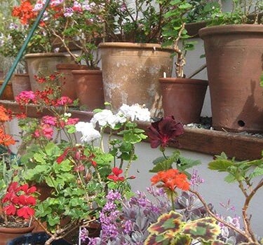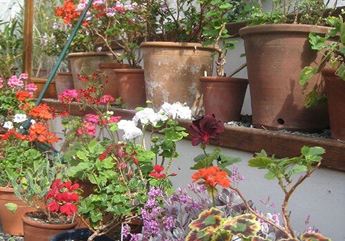 Orchids and exotic hot house flowers are raised here for the house and it is here we keep our collection of scented pelargoniums.