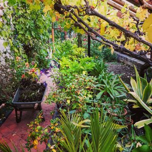 The greenhouses range from the unheated, housing peaches, apricots and nectarines, to the heated, where our tender plants live.