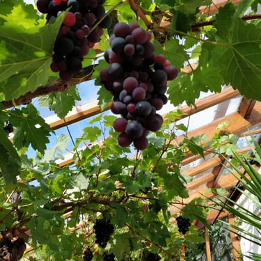 In our fruit cages we grow blueberries, tayberries, loganberries, raspberries, strawberries and 3 types of currants. Root vegetables are overwintered in clamps and leafy greens in the cold greenhouses and we aim to provide produce to the house for 12 months of the year.